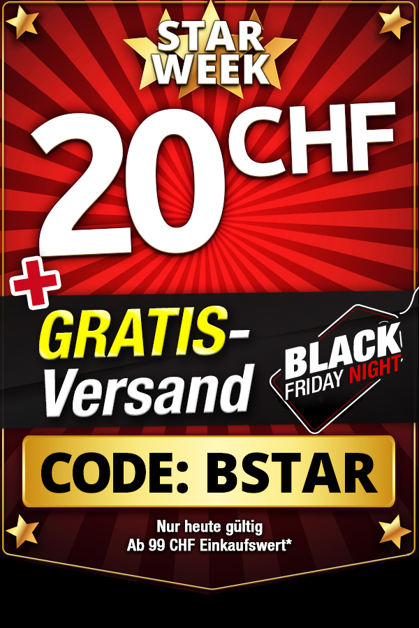 *Nur heute gültig, einmal pro Person, 20 CHF-Einkaufsgutschein für alle Artikel im VEDIA Shop www.vedia.ch, Versandkostenanteil von 6.95 CHF entfällt. Transportzuschlag für grosse Artikel, sperrige Artikel, Möbel und Grossartikel (19.95 CHF, 39.95 CHF bzw. 69.95 CHF) sowie die Versicherungsgebühr sind vom Angebot ausgeschlossen. Barablöse, Kontogutschrift oder Kombination mit anderen Aktionen ist nicht möglich. Bei Retournierung oder Stornierung aller bestellten Artikel verfällt der Anspruch. Angebot gilt nur für Onlinebestellungen auf www.vedia.ch. Der Mindestkaufwert (=Wert der behaltenen Ware und bezahlten Ware) beträgt 99 CHF. Bitte Code BSTAR bei der Bestellung eingeben.