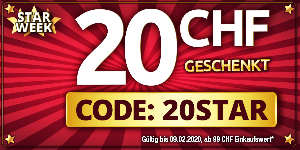 *Gültig nur bis zum 09.02.2020, einmal pro Person einlösbar: 20 CHF-Einkaufsgutschein für alle Artikel im VEDIA Shop www.vedia.ch, inkl. reduzierter Artikel. Barablöse, Kontogutschrift oder eine Kombination mit anderen Aktionen ist nicht möglich. Versand- und Lieferkosten sowie die Versicherungsgebühr sind vom Gutschein ausgeschlossen. Bitte Gutscheincode 20STAR bei der Bestellung eingeben. Der Mindestkaufwert (=Wert der behaltenen Ware und bezahlten Ware) beträgt 99 CHF. Bei Retournierung oder Stornierung aller bestellten Artikel verfällt der Gutschein. Der Gutschein gilt nur für Online-Bestellungen auf www.vedia.ch.