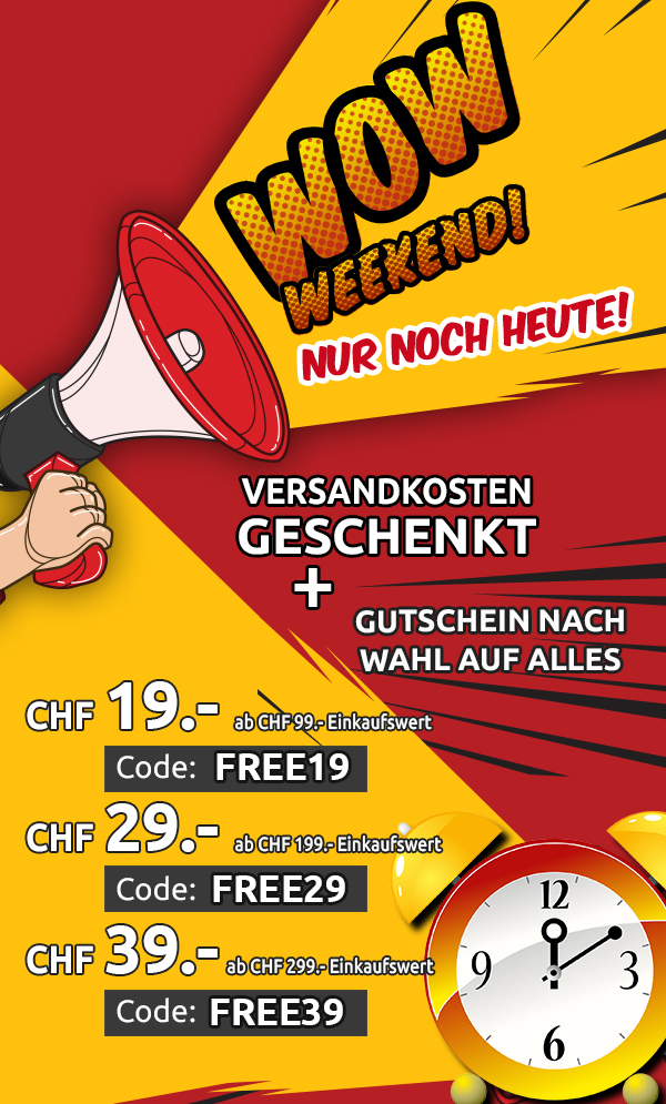 *Nur vom 27.03.2020 bis 29.03.2020, einmal pro Person. Die Einkaufsgutscheine gelten für alle Artikel im VEDIA Shop www.vedia.ch, inkl. reduzierter Artikel. Versandkostenanteil von 6.95 CHF entfällt. Transportzuschlag für grosse Artikel, sperrige Artikel, Möbel und Grossartikel (19.95 CHF, 39.95 CHF bzw. 69.95 CHF) sowie die Versicherungsgebühr sind vom Angebot ausgeschlossen. Barablöse, Kontogutschrift oder Kombination mit anderen Aktionen ist nicht möglich. Bei der Bestellung geben Sie bitte an: Gutscheincode FREE19 für den Gutschein im Wert von 19 CHF, FREE29 für den Gutschein im Wert von 29 CHF und FREE39 für den Gutschein im Wert von 39 CHF. Die Mindestkaufwerte (=Wert der behaltenen Ware und bezahlten Ware) betragen: 99 CHF für den 19 CHF-Gutschein, 199 CHF für den 29 CHF-Gutschein und 299 CHF für den 49 CHF-Gutschein. Bei Retournierung oder Stornierung aller bestellten Artikel verfallen die Gutscheine. Die Gutscheine gelten nur für Onlinebestellungen auf www.vedia.ch.