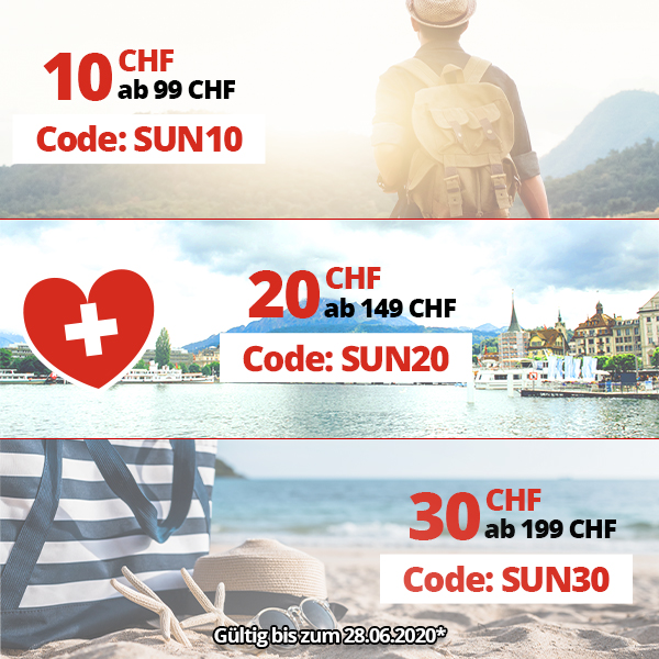 Diese Woche regnet es Gutscheine 10 CHF, 20 CHF und 30 CHF! Endlich Sommer!
