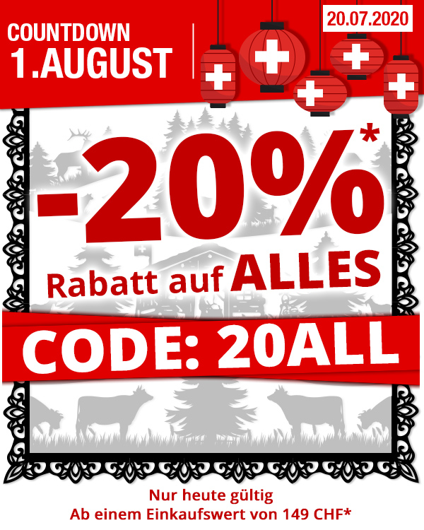 Nicht vergessen: 1.August-Countdown mit heute -20 % auf ALLES