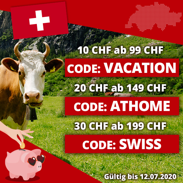 *Gültig nur bis zum 12.07.2020, einmal pro Person. Die Einkaufsgutscheine gelten für alle Artikel im VEDIA Shop www.vedia.ch, inkl. reduzierter Artikel. Barablöse, Kontogutschrift oder Kombination mit anderen Aktionen ist nicht möglich. Versand- und Lieferkosten sowie die Versicherungsgebühr sind vom Gutschein ausgeschlossen. Bei der Bestellung geben Sie bitte an: Gutscheincode VACATION für den Gutschein im Wert von 10 CHF, ATHOME für den Gutschein im Wert von 20 CHF und SWISS für den Gutschein im Wert von 30 CHF. Die Mindestkaufwerte (=Wert der behaltenen Ware und bezahlten Ware) betragen: 99 CHF für den 10 CHF-Gutschein, 149 CHF für den 20 CHF-Gutschein und 199 CHF für den 30 CHF-Gutschein. Bei Retournierung oder Stornierung aller bestellten Artikel verfallen die Gutscheine. Die Gutscheine gelten nur für Onlinebestellungen auf www.vedia.ch.