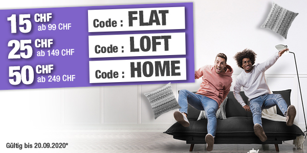 *Gültig bis 20.09.2020, einmal pro Person. Die Einkaufsgutscheine gelten für alle Artikel im VEDIA Shop www.vedia.ch, inkl. reduzierter Artikel. Barablöse, Kontogutschrift oder Kombination mit anderen Aktionen ist nicht möglich. Versand- und Lieferkosten sowie die Versicherungsgebühr sind vom Gutschein ausgeschlossen. Bei der Bestellung geben Sie bitte an: Gutscheincode FLAT für den Gutschein im Wert von 15 CHF, LOFT für den Gutschein im Wert von 25 CHF und HOME für den Gutschein im Wert von 50 CHF. Die Mindestkaufwerte (=Wert der behaltenen Ware und bezahlten Ware) betragen: 99 CHF für den 15 CHF-Gutschein, 149 CHF für den 25 CHF-Gutschein und 249 CHF für den 50 CHF-Gutschein. Bei Retournierung oder Stornierung aller bestellten Artikel verfallen die Gutscheine. Die Gutscheine gelten nur für Onlinebestellungen auf www.vedia.ch.