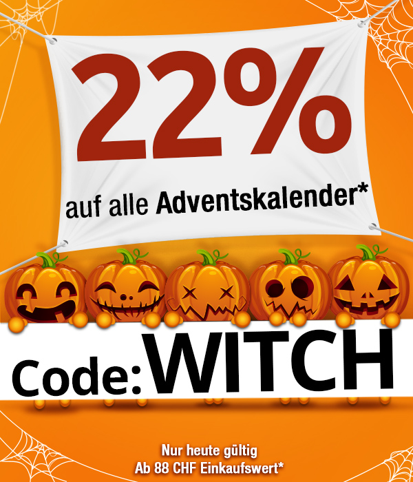 *Gültig nur am 29.10.2020, einmal pro Person einlösbar: 22 % Rabatt auf alle Artikel der Rubrik «Adventskalender» im VEDIA Shop www.vedia.ch, inkl. reduzierter Artikel. Barablöse, Kontogutschrift oder eine Kombination mit anderen Aktionen ist nicht möglich. Versand- und Lieferkosten sowie die Versicherungsgebühr sind vom Rabatt ausgeschlossen. Bitte Rabattcode WITCH bei der Bestellung eingeben. Der Mindestkaufwert (=Wert der behaltenen Ware und bezahlten Ware) beträgt 88 CHF. Bei Retournierung oder Stornierung aller bestellten Artikel verfällt der Rabatt. Der Rabatt gilt nur für Online-Bestellungen auf www.vedia.ch.
