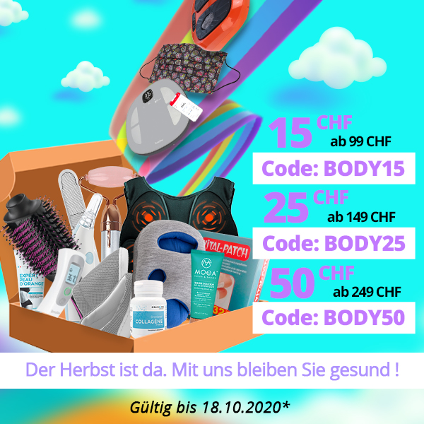 *Gültig bis 18.10.2020, einmal pro Person. Die Einkaufsgutscheine gelten für alle Artikel im VEDIA Shop www.vedia.ch, inkl. reduzierter Artikel. Barablöse, Kontogutschrift oder Kombination mit anderen Aktionen ist nicht möglich. Versand- und Lieferkosten sowie die Versicherungsgebühr sind vom Gutschein ausgeschlossen. Bei der Bestellung geben Sie bitte an: Gutscheincode BODY15 für den Gutschein im Wert von 15 CHF, BODY25 für den Gutschein im Wert von 25 CHF und BODY50 für den Gutschein im Wert von 50 CHF. Die Mindestkaufwerte (=Wert der behaltenen Ware und bezahlten Ware) betragen: 99 CHF für den 15 CHF-Gutschein, 149 CHF für den 25 CHF-Gutschein und 249 CHF für den 50 CHF-Gutschein. Bei Retournierung oder Stornierung aller bestellten Artikel verfallen die Gutscheine. Die Gutscheine gelten nur für Onlinebestellungen auf www.vedia.ch.