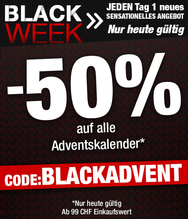 *Gültig nur am 23.11.2020, einmal pro Person einlösbar: 50% Rabatt auf alle Artikel der Rubrik «Adventskalender» im VEDIA Shop www.vedia.ch, inkl. reduzierter Artikel. Barablöse, Kontogutschrift oder eine Kombination mit anderen Aktionen ist nicht möglich. Versand- und Lieferkosten sowie die Versicherungsgebühr sind vom Rabatt ausgeschlossen. Bitte Rabattcode BLACKADVENT bei der Bestellung eingeben. Der Mindestkaufwert (=Wert der behaltenen Ware und bezahlten Ware) beträgt 99 CHF. Bei Retournierung oder Stornierung aller bestellten Artikel verfällt der Rabatt. Der Rabatt gilt nur für Online-Bestellungen auf www.vedia.ch.