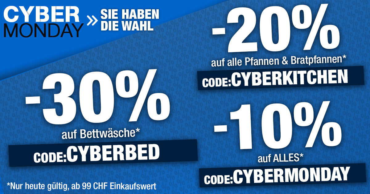 SIE haben die WAHL -10% auf ALLES | - 20 % auf 🍳 & Töpfe | - 30 % auf Bettwäsche CYBER MONDAY! 🤩