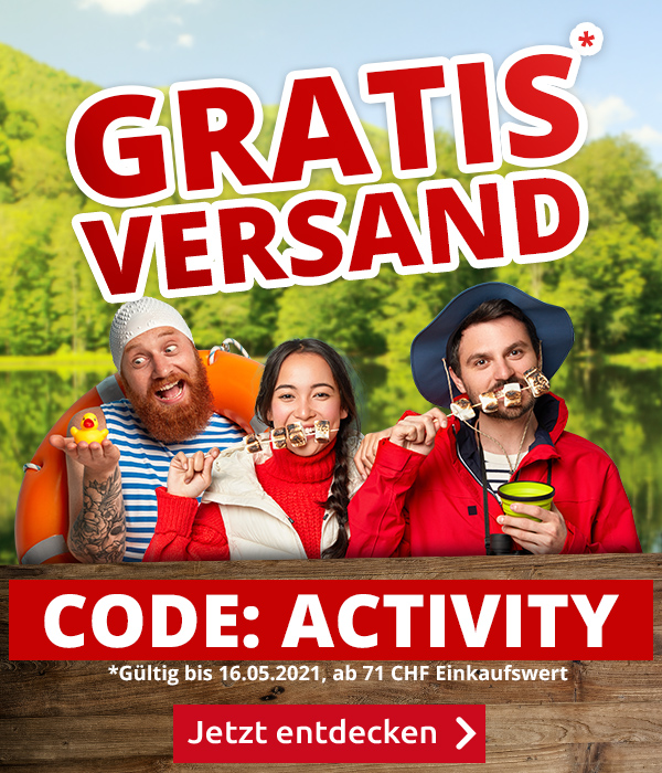 *Gültig nur bis zum 16.05.2021, einmal pro Person: Versandkostenanteil von 6.95 CHF entfällt. Transportzuschlag für grosse Artikel, sperrige Artikel, Möbel und Grossartikel (19.95 CHF, 39.95 CHF bzw. 69.95 CHF) sowie die Versicherungsgebühr sind vom Angebot ausgeschlossen. Bei Retournierung oder Stornierung aller bestellten Artikel verfällt der Anspruch. Angebot gilt nur für Onlinebestellungen auf www.vedia.ch. Der Mindestkaufwert (=Wert der behaltenen Ware und bezahlten Ware) beträgt 71 CHF. Bitte Code ACTIVITY bei der Bestellung eingeben.