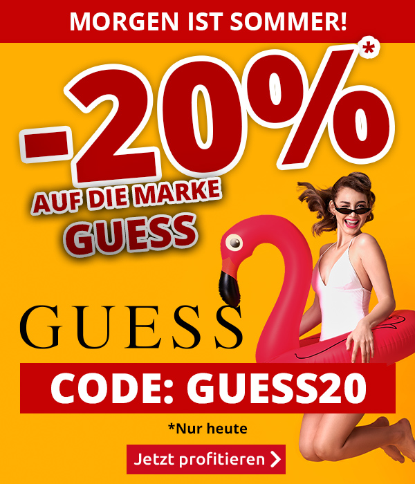 *Nur heute gültig, einmal pro Person einlösbar: 20% Rabatt auf alle Artikel der Marke GUESS im VEDIA Shop www.vedia.ch, inkl. reduzierter Artikel. Barablöse, Kontogutschrift oder eine Kombination mit anderen Aktionen ist nicht möglich. Versand- und Lieferkosten sowie die Versicherungsgebühr sind vom Rabatt ausgeschlossen. Bitte Rabattcode GUESS20 bei der Bestellung eingeben. Bei Retournierung oder Stornierung aller bestellten Artikel verfällt der Rabatt. Der Rabatt gilt nur für Online-Bestellungen auf www.vedia.ch.