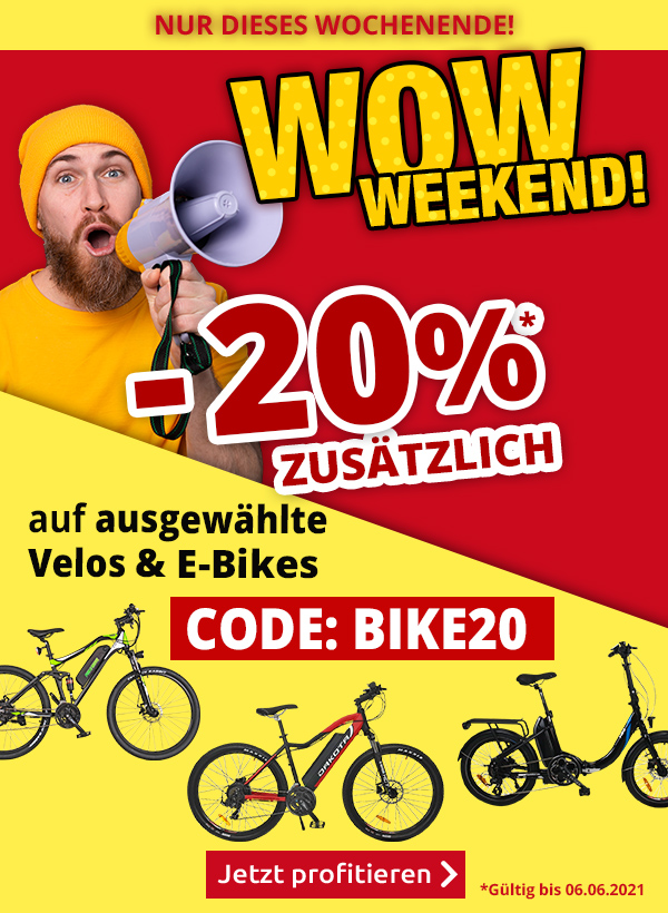 *Gültig nur vom 04.06.2021 bis 06.06.2021, einmal pro Person einlösbar: 20 % Rabatt auf alle Artikel der Rubrik «www.vedia.ch/20210604-20-supplementaires-velo» im VEDIA Shop www.vedia.ch, inkl. reduzierter Artikel. Barablöse, Kontogutschrift oder eine Kombination mit anderen Aktionen ist nicht möglich. Versand- und Lieferkosten sowie die Versicherungsgebühr sind vom Rabatt ausgeschlossen. Bitte Rabattcode BIKE20 bei der Bestellung eingeben. Bei Retournierung oder Stornierung aller bestellten Artikel verfällt der Rabatt. Der Rabatt gilt nur für Online-Bestellungen auf www.vedia.ch.