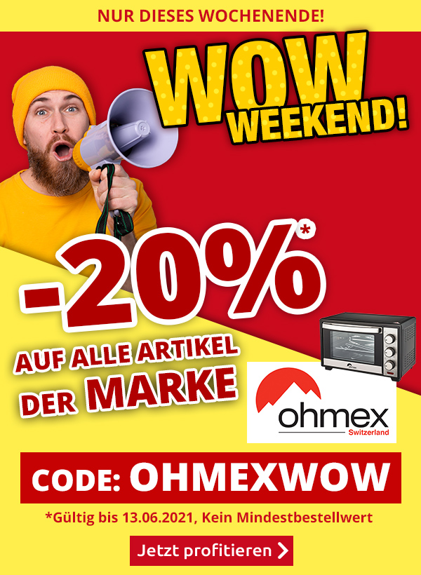 *Gültig nur vom 11.06.2021 bis 13.06.2021, einmal pro Person einlösbar: 20 % Rabatt auf alle Artikel der Artikel «Ohmex» im VEDIA Shop www.vedia.ch, inkl. reduzierter Artikel. Barablöse, Kontogutschrift oder eine Kombination mit anderen Aktionen ist nicht möglich. Versand- und Lieferkosten sowie die Versicherungsgebühr sind vom Rabatt ausgeschlossen. Bitte Rabattcode OHMEXWOW bei der Bestellung eingeben. Kein Mindestbestellwert . Bei Retournierung oder Stornierung aller bestellten Artikel verfällt der Rabatt. Der Rabatt gilt nur für Online-Bestellungen auf www.vedia.ch.