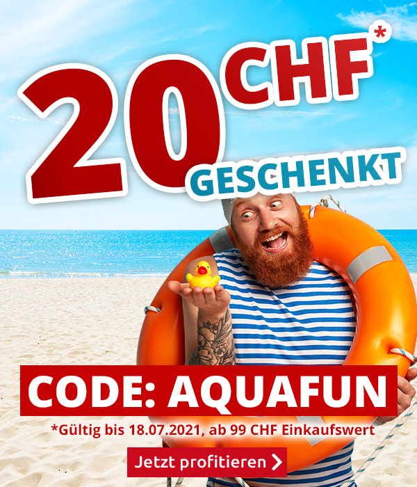 *Gültig am 18.07.2021, einmal pro Person einlösbar: 20 CHF-Einkaufsgutschein für alle Artikel im VEDIA Shop www.vedia.ch, inkl. reduzierter Artikel. Barablöse, Kontogutschrift oder eine Kombination mit anderen Aktionen ist nicht möglich. Versandkosten und Transportzuschläge sowie die Versicherungsgebühr sind vom Gutschein ausgeschlossen. Bitte Gutscheincode AQUAFUN bei der Bestellung eingeben. Der Mindestkaufwert (=Wert der behaltenen Ware und bezahlten Ware) beträgt CHF 99. Bei Retournierung oder Stornierung aller bestellten Artikel verfällt der Gutschein. Der Gutschein gilt nur für Online-Bestellungen auf www.vedia.ch.