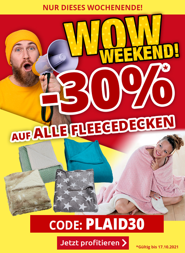 *Gültig nur vom 15.10.2021 bis 17.10.2021, einmal pro Person einlösbar: 30 % Rabatt auf alle Artikel der Rubrik «Plaid» im VEDIA Shop www.vedia.ch, inkl. reduzierter Artikel. Barablöse, Kontogutschrift oder eine Kombination mit anderen Aktionen ist nicht möglich. Versandkosten und Transportzuschläge sowie die Versicherungsgebühr sind vom Rabatt ausgeschlossen. Bitte Rabattcode PLAID30 bei der Bestellung eingeben. Kein Mindestbestellwert . Bei Retournierung oder Stornierung aller bestellten Artikel verfällt der Rabatt. Der Rabatt gilt nur für Online-Bestellungen auf www.vedia.ch.