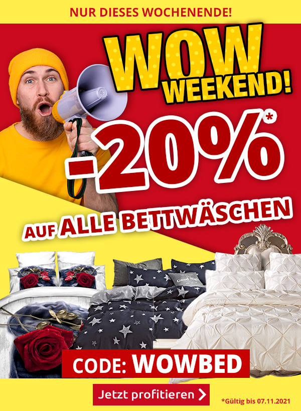 *Gültig nur vom 05.11.2021 bis 07.11.2021, einmal pro Person einlösbar: 20 % Rabatt auf alle Artikel der Rubrik «Bettwäsche» im VEDIA Shop www.vedia.ch, inkl. reduzierter Artikel. Barablöse, Kontogutschrift oder eine Kombination mit anderen Aktionen ist nicht möglich. Versandkosten und Transportzuschläge sowie die Versicherungsgebühr sind vom Rabatt ausgeschlossen. Bitte Rabattcode WOWBED bei der Bestellung eingeben. Kein Mindestbestellwert . Bei Retournierung oder Stornierung aller bestellten Artikel verfällt der Rabatt. Der Rabatt gilt nur für Online-Bestellungen auf www.vedia.ch.