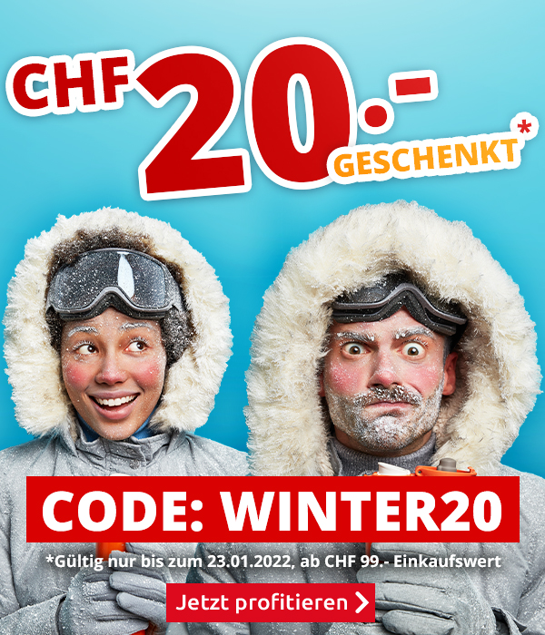 *Gültig nur bis zum 23.01.2022, einmal pro Person einlösbar: CHF 20.- Einkaufsgutschein für alle Artikel im VEDIA Shop www.vedia.ch, inkl. reduzierter Artikel. Barablöse, Kontogutschrift oder eine Kombination mit anderen Aktionen ist nicht möglich. Versandkosten und Transportzuschläge sowie die Versicherungsgebühr sind vom Gutschein ausgeschlossen. Bitte Gutscheincode WINTER20 bei der Bestellung eingeben. Der Mindestkaufwert (=Wert der behaltenen Ware und bezahlten Ware) beträgt CHF 99.-. Bei Retournierung oder Stornierung aller bestellten Artikel verfällt der Gutschein. Der Gutschein gilt nur für Online-Bestellungen auf www.vedia.ch.
