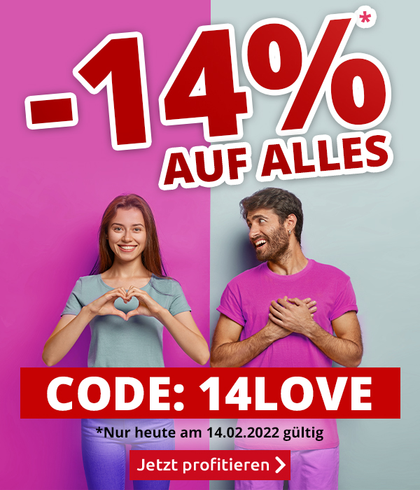 *Gültig nur am 14.02.2022, einmal pro Person einlösbar: 14% Rabatt auf alle Artikel im VEDIA Shop www.kays.ch, inkl. reduzierter Artikel. Barablöse, Kontogutschrift oder eine Kombination mit anderen Aktionen ist nicht möglich. Versandkosten und Transportzuschläge sowie die Versicherungsgebühr sind vom Rabatt ausgeschlossen. Bitte Rabattcode 14LOVE bei der Bestellung eingeben. Bei Retournierung oder Stornierung aller bestellten Artikel verfällt der Rabatt. Der Rabatt gilt nur für Online-Bestellungen auf www.vedia.ch.