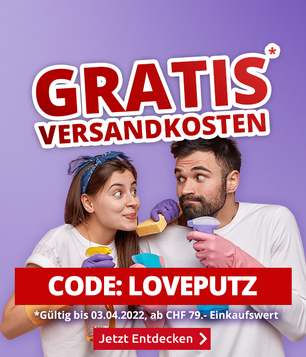 *Gültig nur bis zum 03.04.2022, einmal pro Person einlösbar: Versandkostenanteil von CHF 6.95 entfällt. Transportzuschläge für sperrige Artikel, Möbel und andere Speditions-Artikel im Wert von CHF 19.95, CHF 49.95, CHF 99  bzw. CHF 129 sind vom Angebot ausgenommen. Bei Retournierung oder Stornierung aller bestellten Artikel verfällt der Anspruch. Angebot gilt nur für Onlinebestellungen auf www.vedia.ch. Der Mindestkaufwert (=Wert der behaltenen Ware und bezahlten Ware) beträgt CHF 79.-. Bitte Code LOVEPUTZ bei der Bestellung eingeben.