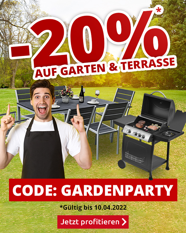 *Gültig nur bis 10.04.2022, einmal pro Person einlösbar: 20% Rabatt auf alle Artikel der Rubrik «Garten & Terrasse» im VEDIA Shop www.vedia.ch, inkl. reduzierter Artikel. Barablöse, Kontogutschrift oder eine Kombination mit anderen Aktionen ist nicht möglich. Versandkosten und Transportzuschläge sowie die Versicherungsgebühr sind vom Rabatt ausgeschlossen. Bitte Rabattcode GARDENPARTY bei der Bestellung eingeben. Bei Retournierung oder Stornierung aller bestellten Artikel verfällt der Rabatt. Der Rabatt gilt nur für Online-Bestellungen auf www.vedia.ch.