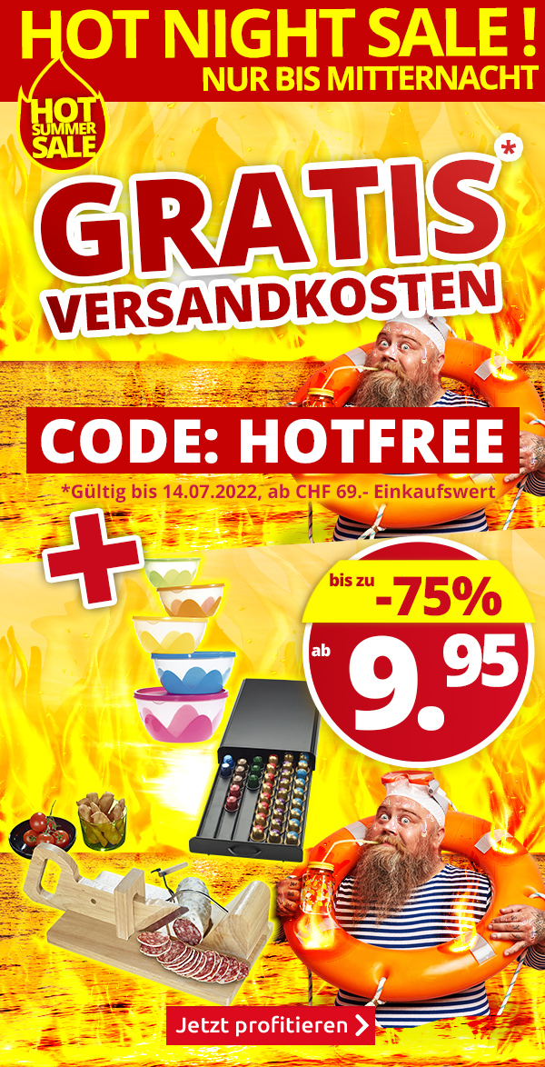 *Gültig nur am 14.07.2022, versandkostenfrei bestellen: Für die Auslieferung per Post entfällt der Versandkostenanteil von CHF 6.95 pro Bestellung (einmal pro Person einlösbar). Der Gratis-Versand gilt für alle Artikel im VEDIA Shop www.vedia.ch, inkl. reduzierter Artikel. Die Transportzuschläge für Möbel und andere Speditions-Artikel im Wert von CHF 19.95, CHF 49.95, CHF 99 bzw. CHF 129 sind vom Angebot ausgenommen und werden gegebenenfalls in Rechnung gestellt. Ebenfalls in Rechnung gestellt wird die Versicherungsprämie von CHF 0.90 bei Bestellungen unter CHF 110, bzw. darüber 0,8 % der Fakturasumme. Bei Retournierung oder Stornierung aller bestellten Artikel verfällt der Anspruch auf den Gratis-Versand. Der Gratis-Versand gilt nur für Online-Bestellungen auf www.vedia.ch. Der Mindestkaufwert (=Wert der behaltenen Ware und bezahlten Ware) beträgt CHF 69. Bitte Code HOTFREE bei der Bestellung eingeben.
