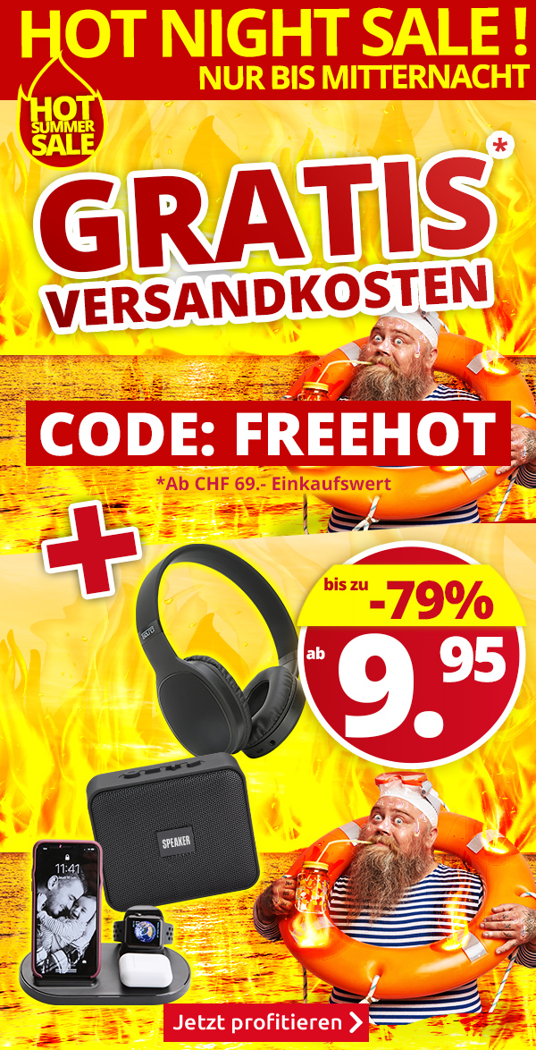 *Gültig nur am 04.08.2022, versandkostenfrei bestellen: Für die Auslieferung per Post entfällt der Versandkostenanteil von CHF 6.95 pro Bestellung (einmal pro Person einlösbar). Der Gratis-Versand gilt für alle Artikel im VEDIA Shop www.vedia.ch, inkl. reduzierter Artikel. Die Transportzuschläge für Möbel und andere Speditions-Artikel im Wert von CHF 19.95, CHF 49.95, CHF 99 bzw. CHF 129 sind vom Angebot ausgenommen und werden gegebenenfalls in Rechnung gestellt. Ebenfalls in Rechnung gestellt wird die Versicherungsprämie von CHF 0.90 bei Bestellungen unter CHF 110, bzw. darüber 0,8 % der Fakturasumme. Bei Retournierung oder Stornierung aller bestellten Artikel verfällt der Anspruch auf den Gratis-Versand. Der Gratis-Versand gilt nur für Online-Bestellungen auf www.vedia.ch. Der Mindestkaufwert (=Wert der behaltenen Ware und bezahlten Ware) beträgt CHF 69. Bitte Code FREEHOT bei der Bestellung eingeben.