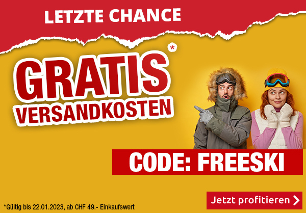 *Gültig nur bis zum 22.01.2023: Versandkostenanteil von CHF 6.95 entfällt. Transportzuschläge für sperrige Artikel, Möbel und andere Speditions-Artikel im Wert von CHF 19.95, CHF 79.95, CHF 99.-  bzw. CHF 149.- sind vom Angebot ausgenommen. Bei Retournierung oder Stornierung aller bestellten Artikel verfällt der Anspruch. Angebot gilt nur für Onlinebestellungen auf www.vedia.ch. Der Mindestkaufwert (=Wert der behaltenen Ware und bezahlten Ware) beträgt CHF 49.-. Bitte Code FREESKI bei der Bestellung eingeben.