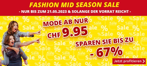 + FASHION MID SEASON SALE ➤ Shoppen Sie MODE ab CHF 9.95 & sparen Sie bis zu -67%!