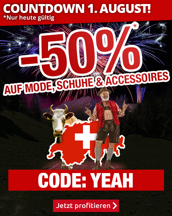| Freuen Sie sich mit uns auf den 1. August & profitieren Sie von -50% auf die ganze Mode mit Code YEAH! Sollte diese E-Mail nicht korrekt angezeigt werden, sehen Sie sich hier die Online-Version an. |