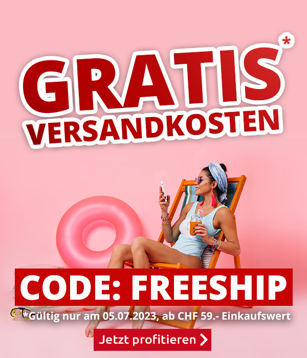 *Gültig nur am 05.07.2023: Versandkostenanteil von CHF 6.95 entfällt. Transportzuschläge für sperrige Artikel, Möbel und andere Speditions-Artikel im Wert von CHF 19.95, CHF 79.95, CHF 99.- bzw. CHF 149.- sind vom Angebot ausgenommen. Bei Retournierung oder Stornierung aller bestellten Artikel verfällt der Anspruch. Angebot gilt nur für Onlinebestellungen auf www.vedia.ch. Der Mindestkaufwert (=Wert der behaltenen Ware und bezahlten Ware) beträgt CHF 59.-. Bitte Code FREESHIP bei der Bestellung eingeben.