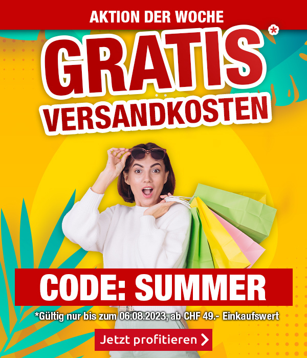 *Gültig nur bis zum 06.08.2023: Versandkostenanteil von CHF 6.95 entfällt. Transportzuschläge für sperrige Artikel, Möbel und andere Speditions-Artikel im Wert von CHF 19.95, CHF 79.95, CHF 99.-  bzw. CHF 149.- sind vom Angebot ausgenommen. Bei Retournierung oder Stornierung aller bestellten Artikel verfällt der Anspruch. Angebot gilt nur für Onlinebestellungen auf www.vedia.ch. Der Mindestkaufwert (=Wert der behaltenen Ware und bezahlten Ware) beträgt CHF 49.-. Bitte Code SUMMER bei der Bestellung eingeben.
