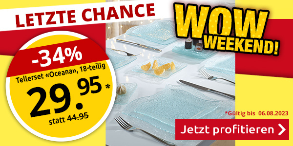 *Gültig nur bis zum 06.08.2023: Versandkostenanteil von CHF 6.95 entfällt. Transportzuschläge für sperrige Artikel, Möbel und andere Speditions-Artikel im Wert von CHF 19.95, CHF 79.95, CHF 99.-  bzw. CHF 149.- sind vom Angebot ausgenommen. Bei Retournierung oder Stornierung aller bestellten Artikel verfällt der Anspruch. Angebot gilt nur für Onlinebestellungen auf www.vedia.ch. Der Mindestkaufwert (=Wert der behaltenen Ware und bezahlten Ware) beträgt CHF 49.-. Bitte Code SUMMER bei der Bestellung eingeben.