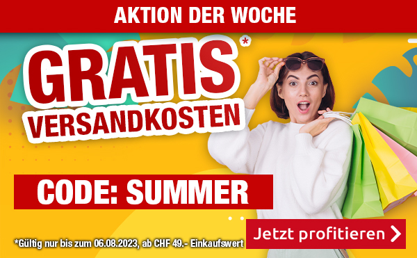 *Gültig nur bis zum 06.08.2023: Versandkostenanteil von CHF 6.95 entfällt. Transportzuschläge für sperrige Artikel, Möbel und andere Speditions-Artikel im Wert von CHF 19.95, CHF 79.95, CHF 99.-  bzw. CHF 149.- sind vom Angebot ausgenommen. Bei Retournierung oder Stornierung aller bestellten Artikel verfällt der Anspruch. Angebot gilt nur für Onlinebestellungen auf www.vedia.ch. Der Mindestkaufwert (=Wert der behaltenen Ware und bezahlten Ware) beträgt CHF 49.-. Bitte Code SUMMER bei der Bestellung eingeben.