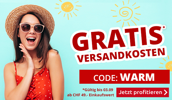 *Gültig nur bis zum 03.09.2023: Versandkostenanteil von CHF 6.95 entfällt. Transportzuschläge für sperrige Artikel, Möbel und andere Speditions-Artikel im Wert von CHF 19.95, CHF 79.95, CHF 99.-  bzw. CHF 149.- sind vom Angebot ausgenommen. Bei Retournierung oder Stornierung aller bestellten Artikel verfällt der Anspruch. Angebot gilt nur für Onlinebestellungen auf www.vedia.ch. Der Mindestkaufwert (=Wert der behaltenen Ware und bezahlten Ware) beträgt CHF 49.-. Bitte Code WARM bei der Bestellung eingeben.