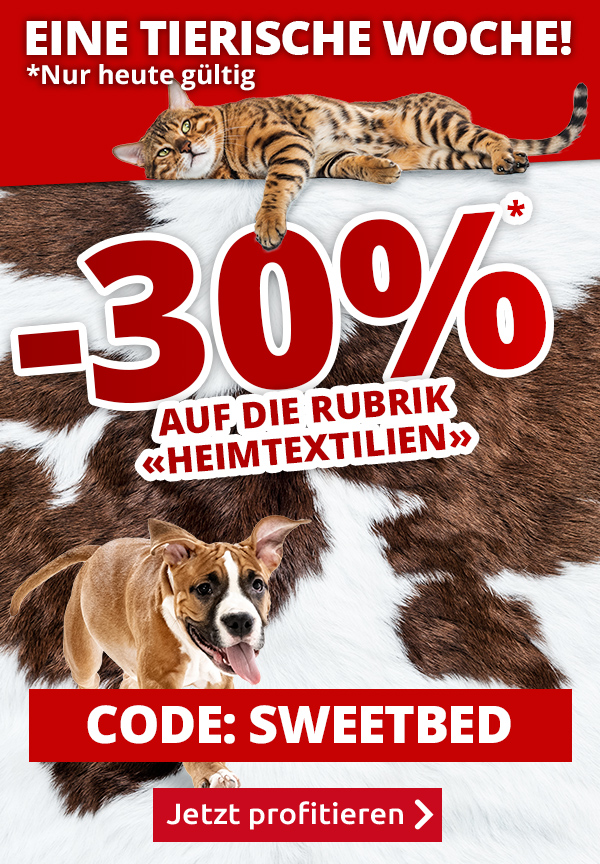 *Gültig nur am 09.10.2023, einmal pro Person einlösbar: 30% Rabatt auf alle Artikel der Rubrik «Heimtextilien» im VEDIA Shop www.vedia.ch, inkl. reduzierter Artikel. Barablöse, Kontogutschrift oder eine Kombination mit anderen Aktionen ist nicht möglich. Versandkosten und Transportzuschläge sowie die Versicherungsgebühr sind vom Rabatt ausgeschlossen. Bitte Rabattcode SWEETBED bei der Bestellung eingeben. Bei Retournierung oder Stornierung aller bestellten Artikel verfällt der Rabatt. Der Rabatt gilt nur für Online-Bestellungen auf www.vedia.ch.