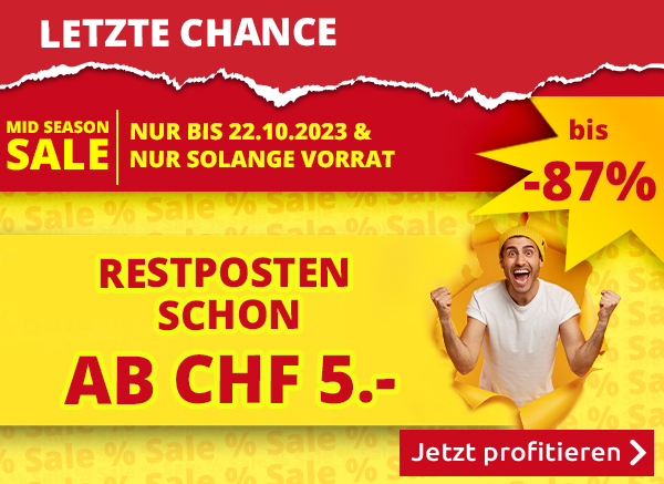 Sparen Sie bis zu -87% auf unsere Restposten! Nur solange Vorrat & nur noch bis 00h!