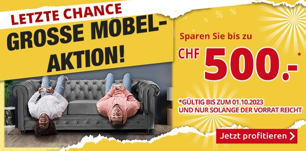 | LETZTE CHANCE ➤ WOW-Weekend Angebote! +++ Bis zu CHF 500.- auf Ihre Möbel! +++ Sparen Sie auf die Mode! Sollte diese E-Mail nicht korrekt angezeigt werden, sehen Sie sich hier die Online-Version an. |