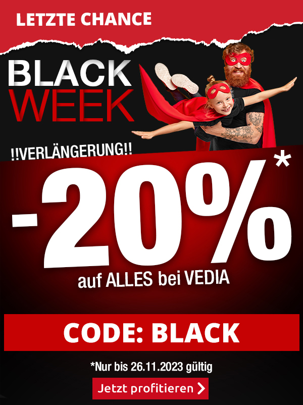 LETZTE CHANCE auf -20% mit Code BLACK, nur bis Mitternacht! ⏳ BLACK DEALS Sollte diese E-Mail nicht korrekt angezeigt werden, sehen Sie sich hier die Online-Version an. |