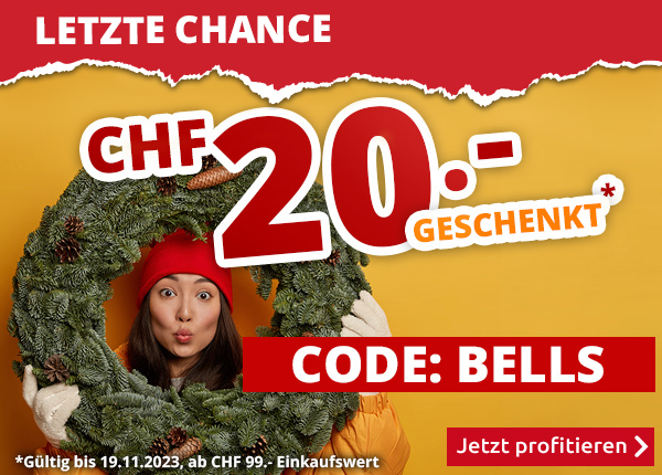 *Gültig nur bis zum 19.11.2023, CHF 20.- Einkaufsgutschein für alle Artikel im VEDIA Shop www.vedia.ch. Der Mindestkaufwert (=Wert der behaltenen Ware und bezahlten Ware) beträgt CHF 99.-. Bei Retournierung oder Stornierung aller bestellten Artikel verfällt der Gutschein. Der Einkaufsgutschein gilt für alle Artikel im VEDIA Online-Shop, inkl. reduzierter Artikel. Versandkosten und Transportzuschläge sowie die Versicherungsgebühr sind vom Gutschein ausgeschlossen. Bitte Gutscheincode BELLS bei der Bestellung eingeben. Der Gutschein gilt nur für Onlinebestellungen auf www.vedia.ch.