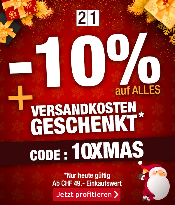 *Gültig nur heute am 21.12.2023, einmal pro Person, 10% Rabatt auf alle Artikel im VEDIA Shop www.vedia.ch, Versandkostenanteil von CHF 6.95 entfällt. Die Transportzuschläge für Möbel und andere Speditions-Artikel im Wert von CHF 19.95, CHF 79.95, CHF 99.- bzw. CHF 149.- sind vom Angebot ausgenommen und werden gegebenenfalls in Rechnung gestellt. Barablöse, Kontogutschrift oder Kombination mit anderen Aktionen ist nicht möglich. Bei Retournierung oder Stornierung aller bestellten Artikel verfällt der Anspruch. Angebot gilt nur für Onlinebestellungen auf www.kays.ch. Der Mindestkaufwert (=Wert der behaltenen Ware und bezahlten Ware) beträgt CHF 49.-. Bitte Code 10XMAS bei der Bestellung eingeben.
