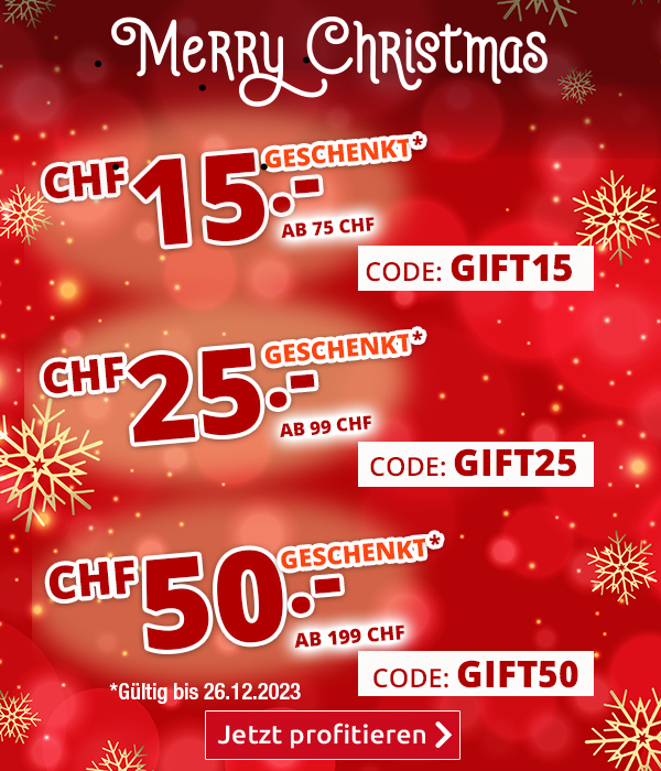 *Gültig nur bis zum 26.12.2023. Die Einkaufsgutscheine gelten für alle Artikel im VEDIA Online-Shop www.vedia.ch, inkl. reduzierter Artikel. Barablöse, Kontogutschrift oder Kombination mit anderen Aktionen ist nicht möglich. Versandkosten und Transportzuschläge sowie die Versicherungsgebühr sind vom Gutschein ausgeschlossen. Bei der Bestellung geben Sie bitte an: Gutscheincode GIFT15 für den Gutschein im Wert von CHF 15.-, GIFT25 für den Gutschein im Wert von CHF 25.- und GIFT50 für den Gutschein im Wert von CHF 50.-. Die Mindestkaufwerte (=Wert der behaltenen Ware und bezahlten Ware) betragen: CHF 75.- für den CHF 15.- Gutschein, CHF99.- für den CHF 25.- Gutschein und CHF 199.- für den CHF 50.- Gutschein. Bei Retournierung oder Stornierung aller bestellten Artikel verfallen die Gutscheine. Die Gutscheine gelten nur für Onlinebestellungen auf www.vedia.ch.