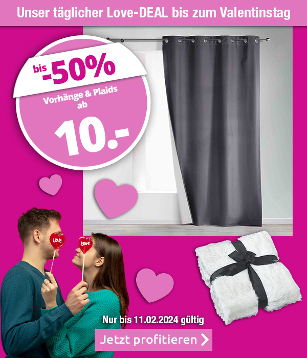 *Gültig nur am 11.02.2024. Die Einkaufsgutscheine gelten für alle Artikel im VEDIA Online-Shop www.vedia.ch, inkl. reduzierter Artikel. Barablöse, Kontogutschrift oder Kombination mit anderen Aktionen ist nicht möglich. Versandkosten und Transportzuschläge sowie die Versicherungsgebühr sind vom Gutschein ausgeschlossen. Bei der Bestellung geben Sie bitte an: Gutscheincode CLEAN für den Gutschein im Wert von CHF 10.-, YOUR für den Gutschein im Wert von CHF 20.- und HOME für den Gutschein im Wert von CHF 30.-. Die Mindestkaufwerte (=Wert der behaltenen Ware und bezahlten Ware) betragen: CHF 59.- für den CHF 10.- Gutschein, CHF 99.- für den CHF 20.- Gutschein und CHF 149.- für den CHF 30.- Gutschein. Bei Retournierung oder Stornierung aller bestellten Artikel verfallen die Gutscheine. Die Gutscheine gelten nur für Onlinebestellungen auf www.vedia.ch.