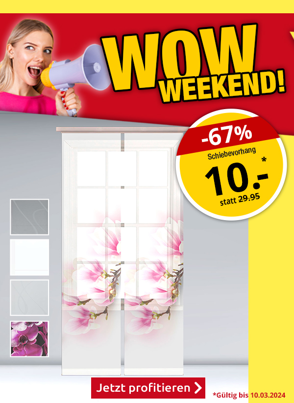 WOW-Weekend: Vorhänge -67% reduziert! +++ -30% Rabatt auf die Damenmode Sollte diese E-Mail nicht korrekt angezeigt werden, sehen Sie sich hier die Online-Version an. |