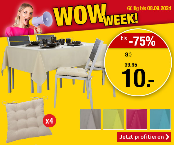 + weitere MEGA-DEALS  Schuhbox nur CHF 10.- | -75% auf Stuhlkissen | Wäscheständer nur CHF 15.-