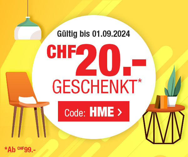 *Gültig bis 01.09.2024: einmal pro Person, 20.- CHF-Einkaufsgutschein für alle Artikel im VEDIA-Shop auf www.vedia.ch. Der Mindestkaufwert (=Wert der behaltenen Ware und bezahlten Ware) beträgt CHF 99.-. Bei Retournierung oder Stornierung aller bestellten Artikel verfällt der Gutschein. Der Einkaufsgutschein gilt für alle Artikel im VEDIA Online-Shop, inkl. reduzierter Artikel. Versandkosten und Transportzuschläge sowie die Versicherungsgebühr sind vom Gutschein ausgeschlossen. Bitte Gutscheincode HME bei der Bestellung eingeben. Der Gutschein gilt nur für Onlinebestellungen auf www.vedia.ch.